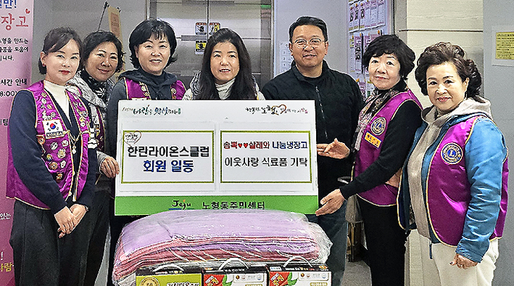 국제라이온스협회 354-G지구 한란라이온스클럽(회장 김정림)은 8일 제주시 노형동주민센터에서 운영하는 '솜뿍살레'에 두유와 수건을 전달했다.