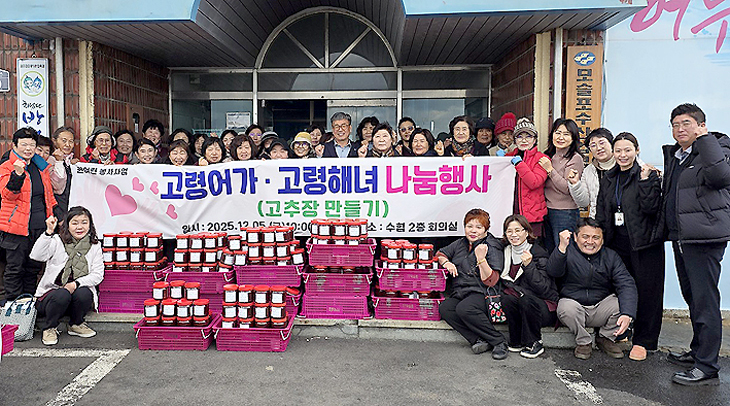 서귀포시 모슬포수협(조합장 문대준)과 한국여성어업인연합회 모슬포수협분회(회장 나순심) 회원 30여 명은 지난 5일 '고령어가·고령해녀 대상 나눔행사'를 열었다.
