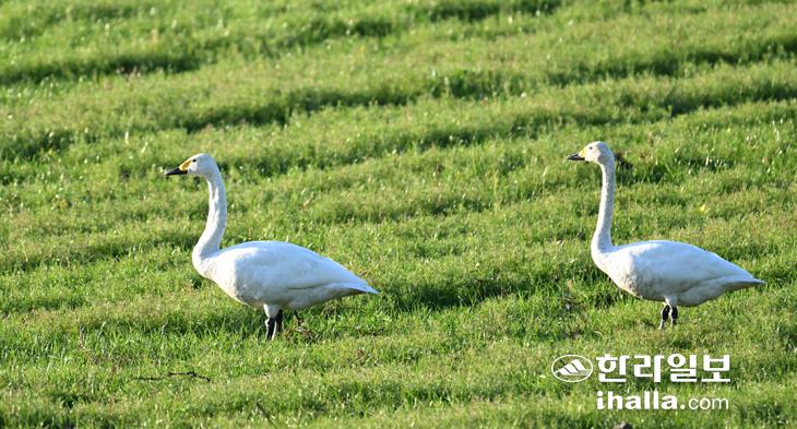 지난 4일 카메라에 잡힌 겨울 진객 고니. 한라일보DB