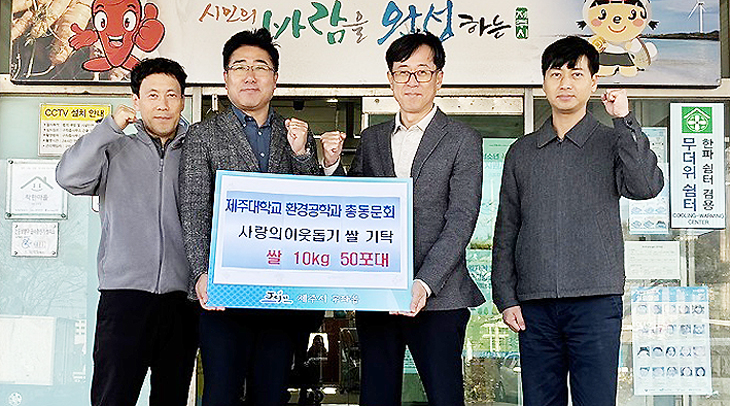 제주대학교 환경공학과 총동문회에서는 지난 5일 저소득 취약계층을 위한 쌀 10kg 50포대(200만 원 상당)를 구좌읍(읍장 안석봉)에 전달했다.