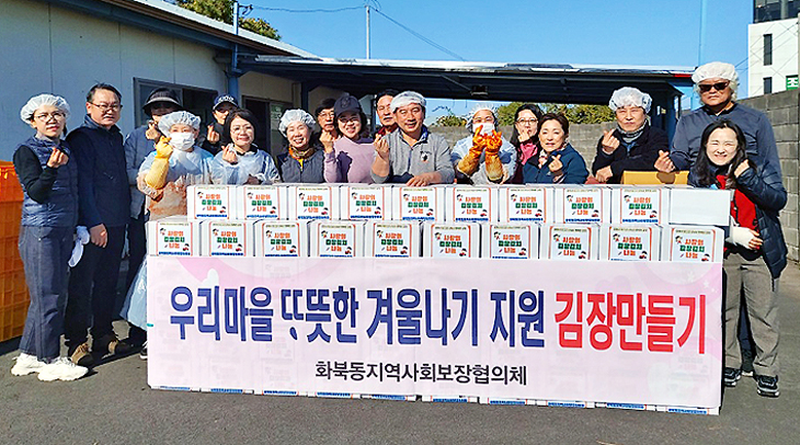 제주시 화북동지역사회보장협의체(공동위원장 김기석·고경남)는 지난 6일 우리마을 따뜻한 겨울나기 지원 김장김치 나눔행사를 가졌다.