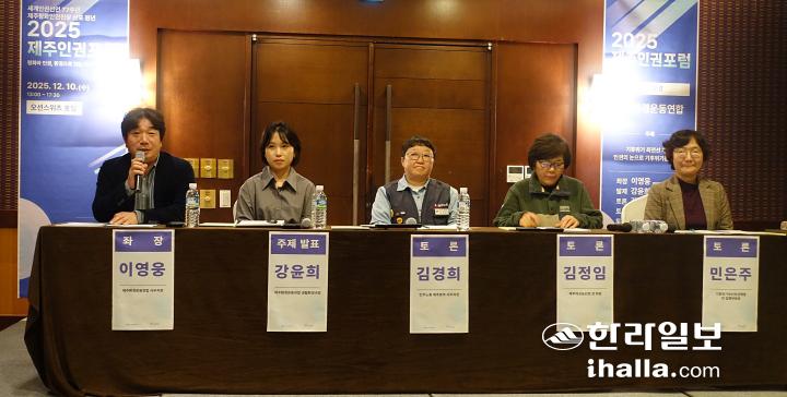 10일 열린 2025 제주인권포럼 ‘환경’ 세션에서 토론자들이 토론하는 모습. 양유리기자