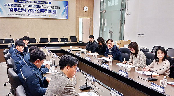 [한라일보] 제주특별자치도 자치경찰위원회(위원장 박영부)는 지난 9일 제주경찰청 학교전담경찰관(SPO)과 자치경찰단 학교안전경찰관 간 업무 협력 방안을 도출하기 위한 실무협의회를 개최했다.