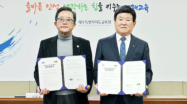 [한라일보] 제주특별자치도교육청은 10일 도교육청 상황실에서 (사)제주생명의숲과 지역 연계 학교산림교육 활성화를 위한 업무협약을 체결했다.