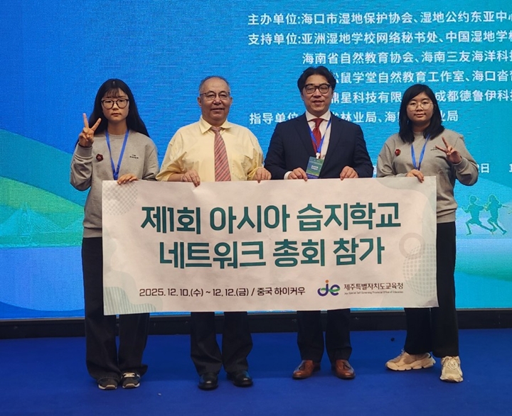제주특별자치도교육청은 지난 9일부터 오는 13일까지 중국 하이커우시에서 열리는 '제1회 아시아 습지학교 네트워크 총회'에 무릉중학교 학생 2명과 인솔교사 등으로 구성된 대표단을 파견해 제주지역 학교의 습지교육 우수 사례를 공유하고 있다고 11일 밝혔다.