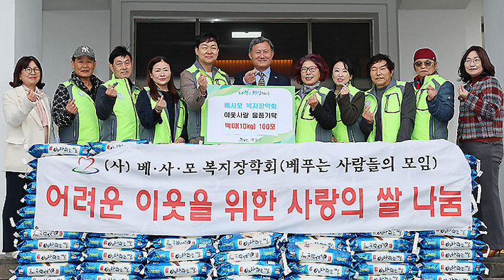 사단법인 베사모복지장학회(이사장 양창영)는 11일 제주시청을 방문해 쌀 10㎏ 100포를 기탁했다.