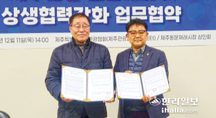 제주특별자치도관광협회(회장 강동훈)와 제주동문재래시장상인회(회장 김원일)는 지난 11일 업무협약을 체결했다.