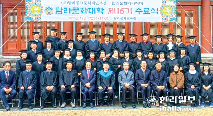 (재)탐라종묘문화재단(이사장 고정언) 부설 탐라문화대학(학장 고순원)은 지난 17일 탐라원 탐라문화교육관에서 탐라문화대학 제16기 수료식을 거행했다.