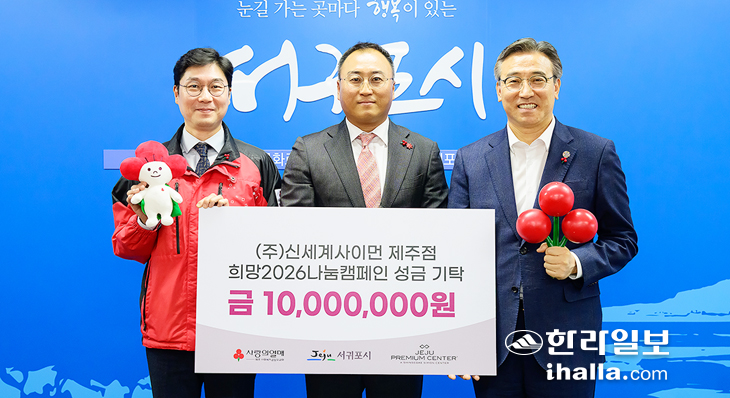 (주)신세계사이먼(대표 김영섭)은 지난 17일 서귀포시청에서 정상기 제주점장, 정종헌 제주사회복지공동모금회 사무처장 등이 참석한 가운데 지역 내 어려운 이웃을 돕기 위한 성금 1000만원을 제주사회복지공동모금회에 기탁했다.