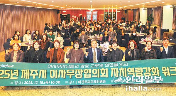 [한라일보] 제주시 이사무장협의회(회장 김영림)는 18일 아젠토피오레컨벤션에서 7개 읍·면의 이사무장 100여 명이 참석한 가운데 자치역량 강화 워크숍을 개최했다.
