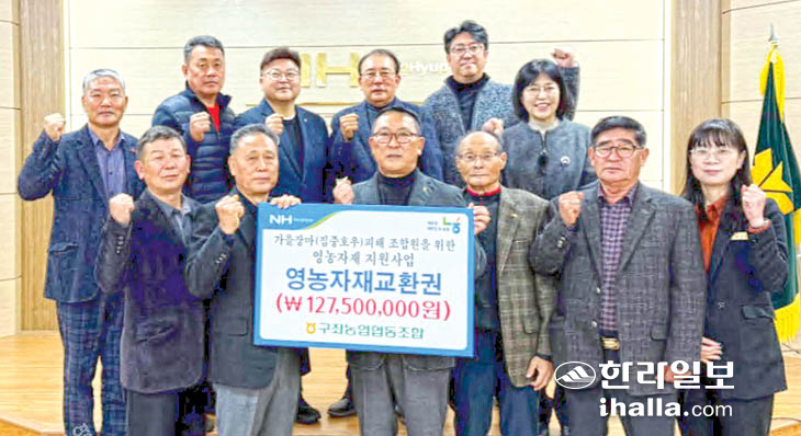 구좌농협(조합장 윤민)은 지난 가을철 이례적인 집중호우 피해를 입은 조합원들에게 경영안정 지원을 위해 1억2700만 원 상당의 영농자재교환권을 최근 지급했다.