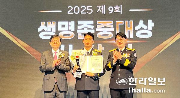 [한라일보] 제주동부소방서 조천119센터 이병준 소방사는 지난 17일 개최된 '2025 생명존중대상' 시상식에서 사회적 의인 부문 대상을 수상했다고 밝혔다.