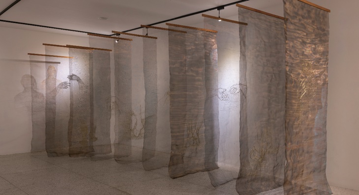 제주특별자치도와 한국미술협회 제주도지회가 2025 제주갤러리 공모 선정 아홉 번째 작가전으로 마련한 이번 전시는 여성의 노동과 기억을 동망(銅網, 구리로 만든 망)에 시각적으로 표현한 설치작품 6점을 선보인다.