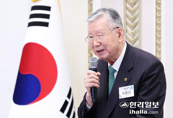 이 대통령의 모두 발언 후 이중근 대한노인회장은 인사말을 통해 "국정으로 바쁘신 가운데도, 대한노인회 각 연합회와 지회장들을 초청해 주셔서 전국의 1000만 어르신을 대표해 깊은 감사의 말씀을 드린다"며 "대통령 취임 이후 노인 등 지역사회 통합돌봄 제도를 준비해 주셔서 감사하다"고 전했다.