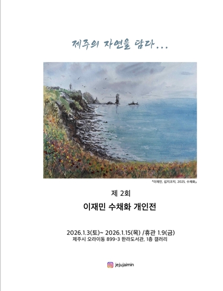 [한라일보] 이재민 작가의 두 번째 수채화 개인전이 내년 1월 3일부터 15일까지 제주시 한라도서관 1층 갤러리에서 열린다.