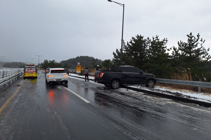 이날 오전 9시 28분쯤 서귀포시 안덕면에서는 눈길에 차량 3대가 부딪히는 사고가 발생했다.