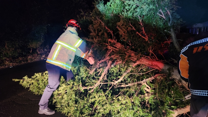 지난 10일 밤 11시 38분쯤 구좌읍에서는 강풍에 가로수가 쓰러져 소방이 안전조치에 나섰다. 제주소방안전본부 제공
