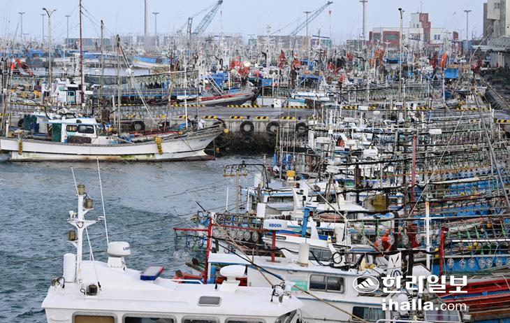 [한라일보] 제주 전역에 풍랑주의보가 내려진 11일 서귀포시 성산읍 성산항에 많은 어선들이 대피해 있다. 강희만기자
