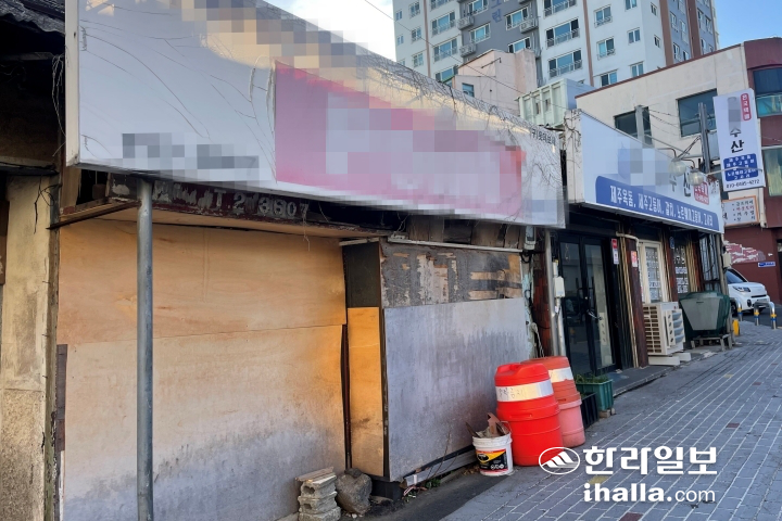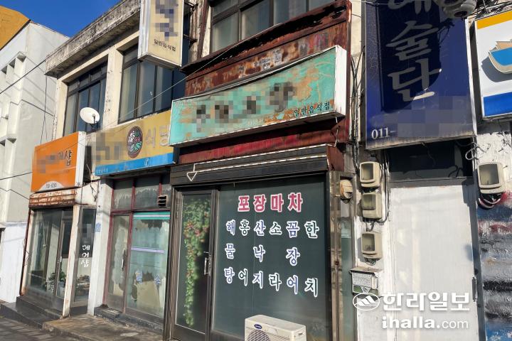 16일 오전 제주시 일도동과 삼도동, 용담동 등 구도심 일대를 확인한 결과 오랜 기간 방치된 노후 간판들을 다수 발견할 수 있었다. 특히 폐점한 지 오랜 시간이 지난 듯 건물 내부가 텅 비었음에도 훼손된 간판이 그대로 설치된 경우도 많았다.