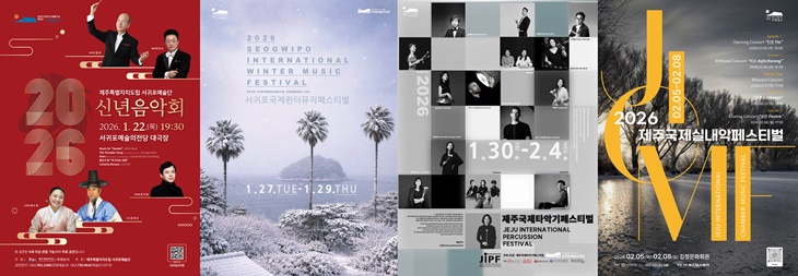 [한라일보] 새해, 그리고 겨울. 서귀포가 '클래식'으로 물든다. 서귀포예술의전당에서 이달 22일 제주도립 서귀포예술단의 '2026 신년음악회'를 시작으로 이달 27~29일 '2026 서귀포국제윈터뮤직페스티벌'과 이달 30일~다음달 4일 '2026 제주국제타악기페스티벌'이, 김정문화회관에서 다음달 5~8일 '제9회 제주국제실내악페스티벌' 등 겨울 클래식 축제가 잇따라서다.