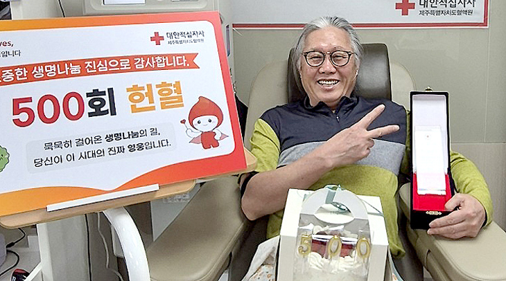 대한적십자사 제주특별자치도혈액원(원장 김선희)은 지난 16일 양태성(67)씨가 헌혈의집 한라센터에서 500회째 헌혈을 달성했다고 18일 밝혔다.