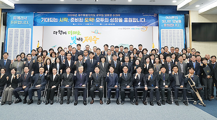 [한라일보] 제주특별자치도는 19일 도청 탐라홀에서 '2026년 상반기 정기인사 임용장 수여식'을 개최했다.
