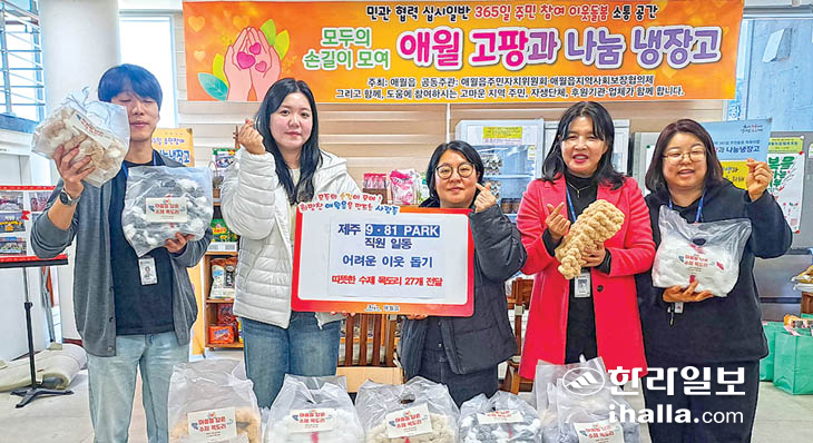 전달된 물품은 직원들이 직접 만든 것으로, 애월읍 민관협력 주민돌봄사업인 '애월고팡과 나눔냉장고'를 통해 지역 내 어려운 이웃에게 전해질 예정이며, 거동이 불편한 이웃들엔 직접 방문해 전달된다.