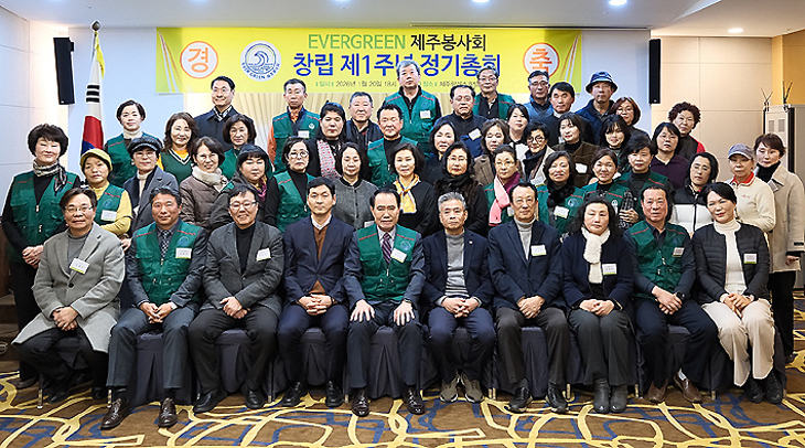에버그린제주봉사회(회장 강기오)는 지난 20일 제주시 팔레스호텔 연회장에서 창립 1주년 정기총회를 개최했다.
