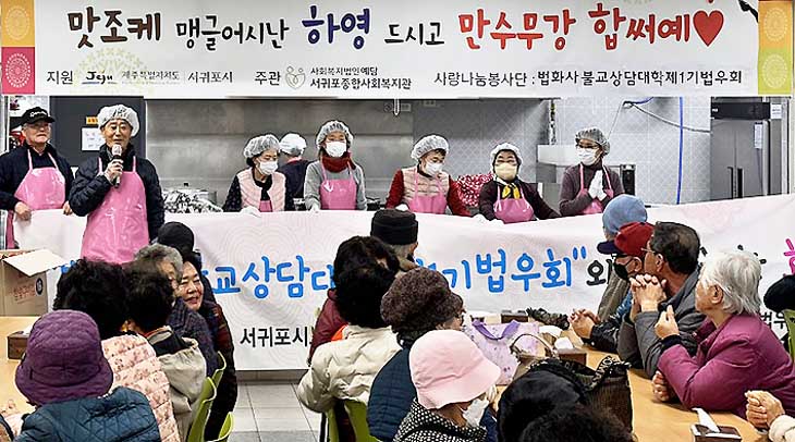 법화사불교상담대학 제10기 법우회(회장 조상균)는 지난 19일 서귀포종합사회복지관 경로식당에서 어르신들을 위한 급식 봉사활동을 진행했다.