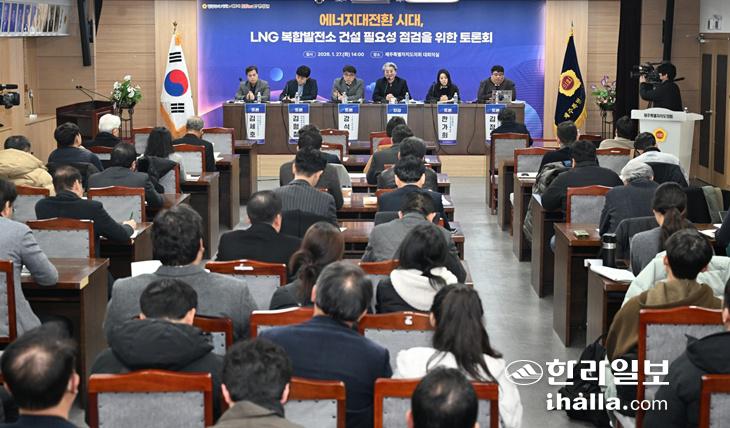 [한라일보] '제주 청정에너지 복합발전소 건설 사업'이 제주도정이 내세운 '2035 탄소중립 실현'과 들어맞는지를 놓고 의견이 엇갈렸다. 전력 수급 안정성을 위해 발전소를 지어야 한다는 한편에 제주도가 밝혀온 정책 방향과 어긋난다는 목소리가 맞섰다. 27일 제주도의회 대회의실에서 열린 '에너지대전환 시대, LNG 복합발전소 건설 필요성 점검 토론회'에서다.