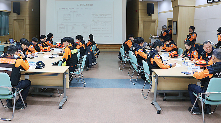제주 서부소방서(서장 고행수)는 29일 소방서 대회의실과 후정에서 상반기 긴급구조통제단 기능숙달 도상훈련 및 임무숙지훈련을 실시했다.