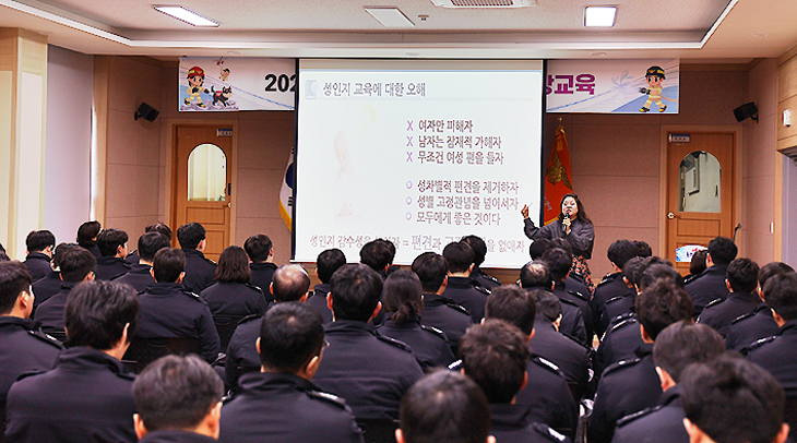 제주동부소방서(서장 강성부)는 지난 28일 동부소방서 대회의실에서 소속 소방공무원 90여 명 대상으로 성평등 가치 실현을 통한 소통하는 공직 문화를 확립하고 대원들의 보건안전을 강화하기 위해 1월 소방공무원 직장교육을 실시했다.