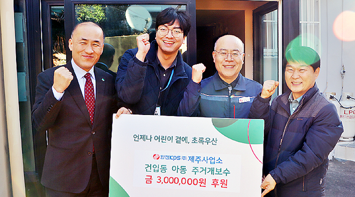 [한라일보] 한전KPS(주)제주사업소(소장 김완수)는 지난 26일 초록우산 제주지역본부(본부장 김희석)에 제주시 건입동 지역 내 아동가정 주거개선사업비 300만원을 후원했다.
