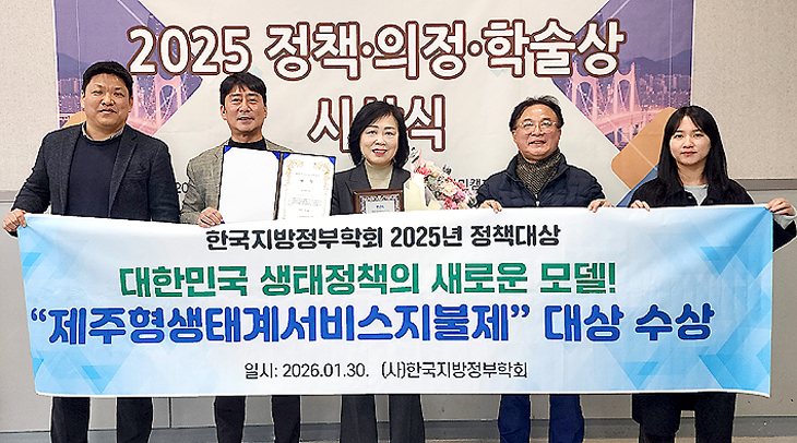 [한라일보] 제주특별자치도의 '제주형 생태계서비스지불제'가 지난달 30일 2025년 정책대상에서 대상을 수상했다.