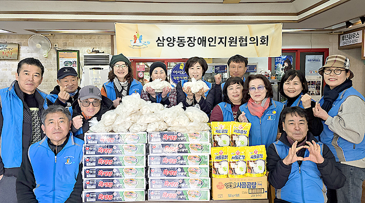 제주시 삼양동장애인지원협의회(회장 강갑수)는 지난달 31일 회원 및 김태균 삼양동장 등이 참여한 가운데 삼양동 내 거주하는 장애인 20가구를 찾아 떡국, 사골국, 라면 등 식료품을 전달하고 안부를 확인했다.
