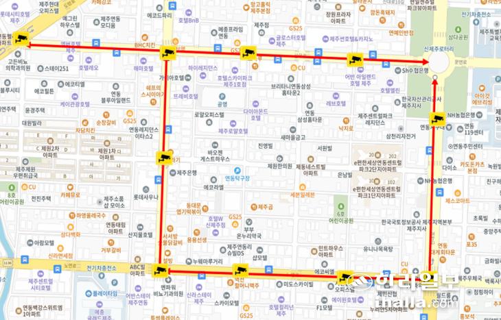 제주시 삼무로와 신광로, 노연로, 신대로를 포함하는 신제주 교통혼잡지역. 이 일대에선 설 연휴에도 불법 주정차 단속이 이뤄진다. 제주시 제공