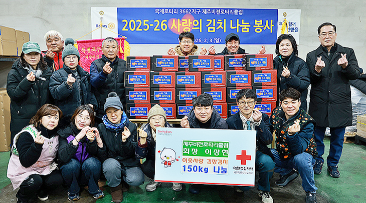 제주비전로타리클럽(회장 이상현)은 최근 대한적십자사 제주특별자치도지사(회장 정태근)에 김장김치 150㎏을 기부했다. 김장김치는 지역 내 취약계층과 복지 사각지대에 놓인 이웃들에게 전달될 예정이다.