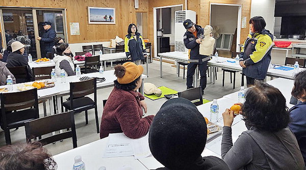 [한라일보] 우도의용소방대(대장 윤용·양수자)와 우도119센터는 지난 11일 서귀포시 우도면 지역 해녀들을 대상으로 응급상황 대응 역량 강화를 위한 심폐소생술(CPR) 교육을 실시했다.
