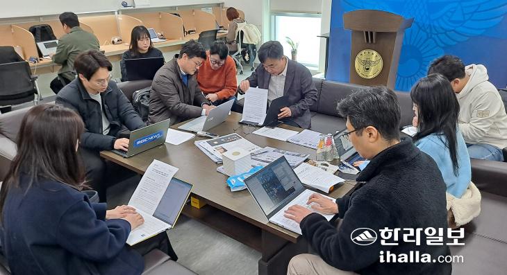 제주경찰청이 오늘(12일) 경찰청 기자실에서 'GM볼' 역베팅 투자사기 범행과 관련 중간 브리핑을 열고 있다. 백금탁기자