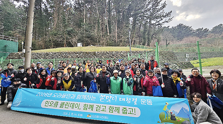 청정제주 만들기와 오라동 주민화합을 위한 이번 설 연휴맞이 대청결운동 '함께 걷고 함께 줍고' 행사에는 오라동주민자치위원회, 오라동통장협의회, 대한노인회, 새마을지도자협의회, 새마을부녀회, 바르게살기위원회, 연합청년회, 청소년지도협의회, 오라동자연문화유산보전회, 민속보존회, 장애인지원협의회, 지역사회보장협의체, 자율방재단, 체육회 등 14개 단체 회원 80여 명이 참여했다.
