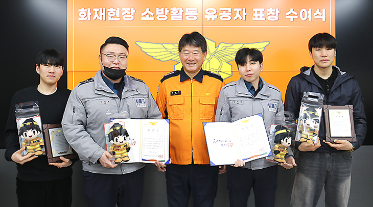 표창을 받은 박하랑·강현우(17) 학생은 지난달 화재현장에서 곧바로 인근 가게에서 소화기를 가지고 나와 초기진압 작업을 실시했다. 또한, 오라지구대 이민우 경감, 강성민 경사, 김세원 경장, 김대호 순경은 소화기를 활용해 신속하게 화재진압에 나서는 등 소방대원들이 화재를 진압할 수 있도록 적극 지원했다.