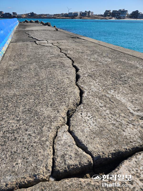 한라일보가 최근 제주시 구좌읍 월정항 인근 포구를 살펴본 결과 바닥 곳곳이 갈라져 균열이 발생한 모습이었다.