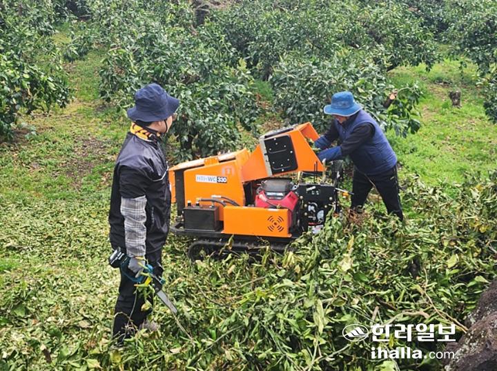 감귤 과수원에서의 파쇄기 작업. 특정 기사와는 관련 없음. 한라일보DB