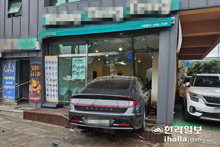 26일 제주소방안전본부와 서귀포경찰서에 따르면 이날 오전 10시 25분쯤 서귀포시 중앙로터리에서 80대 남성 A씨가 몰던 차량이 카페로 돌진했다는 신고가 접수됐다.