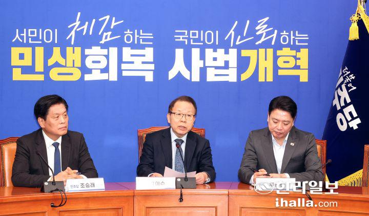 한편 이날 공관위 발표 현장에는 김이수 공관위원장과 조 사무총장, 부승찬 민주당 대변인이 참석했다.