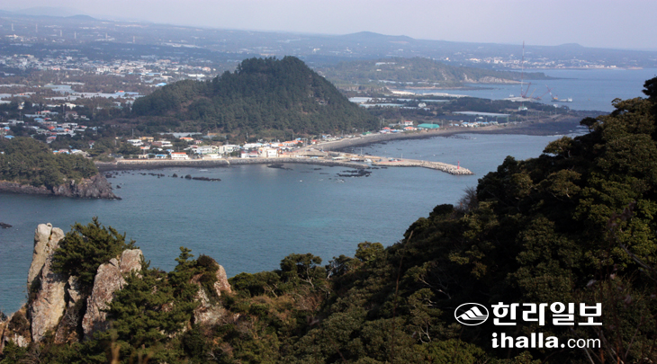 | 보목 앞바다에서 바라본 제지기오름, 한라산이 막힘없이 잘 보인다. 김찬수 |