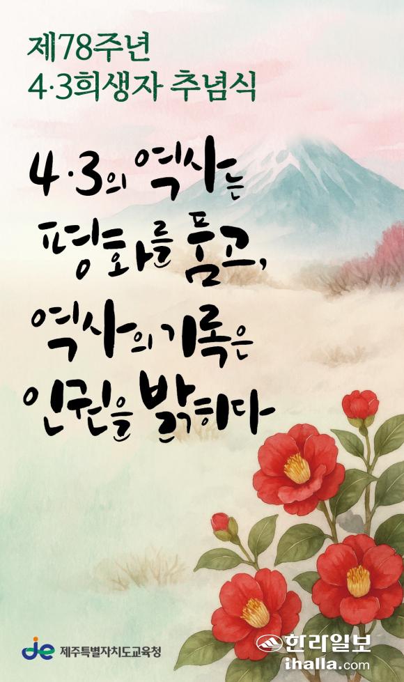 도교육청은 다음 달 30일까지 온라인 추모관도 운영한다. 학생과 지역사회가 4·3 희생자를 추모하고 평화 메시지를 나누도록 마련한 공간이다. 추모관은 도교육청과 제주시·서귀포시교육지원청, 각급 학교 누리집 팝업존을 통해 이용할 수 있다.