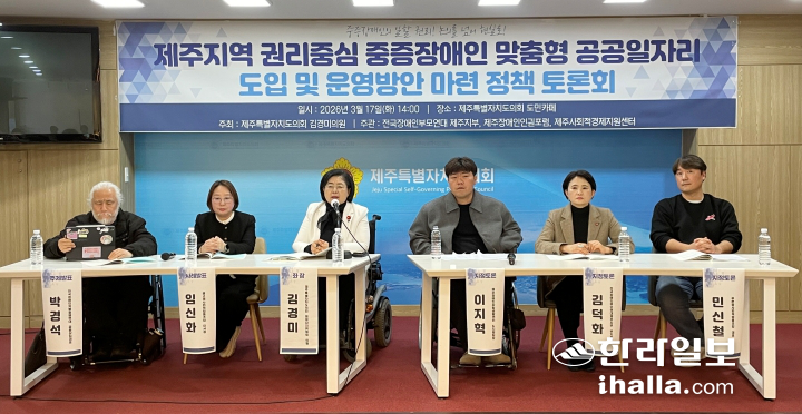 그러면서 ▷제주형 권리중심 공공일자리 시범사업 추진 ▷제주형 권리중심 일자리 조례 제정 ▷사회적 가치 창출 등을 중심으로 한 장애인 일자리 변화 ▷다양한 직무 개발 위한 정책 인프라 구축 ▷장애인 노동권 보호 제도 개선·강화 등을 제언했다.