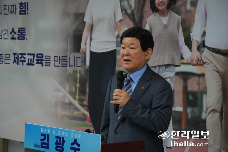 김광수 예비후보는 이날 제주시 노형동 선거사무소에서 기자회견을 열고 '5대 교육 정책 방향'에 따른 주요 공약을 발표하며 이같이 약속했다.