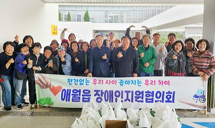 제주시 애월읍장애인지원협의회(회장 양성윤)와 애월읍(읍장 김태헌)은 지난 23일 회원 20여 명과 함께 지역 내 저소득 장애인 20가구를 방문해 '사랑의 밑반찬'을 전달했다. 이날 제주도장애인종합복지관(관장 고경희)에서 지원한 밑반찬과 우리육가공(대표 이상노)의 소고기 10㎏, 제주축협축산물공판장(대표 천창수)의 돼지고기 20㎏을 회원들이 직접 배달했다.